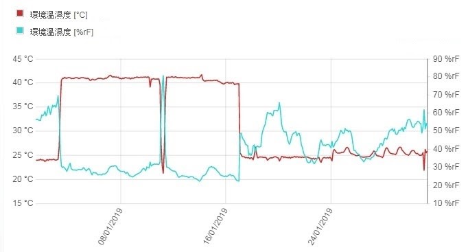 After 1/17 turn on the intake/outflow fan, the environment temperature maintain at 24.5 degree. (AirCon is not running.)