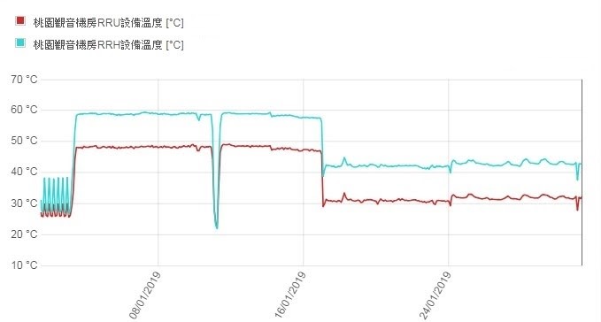 After 1/17 the fan is running, the highest temperature is about 32.5/43 degree for each radio unit. (AC is not running, RRU/RRH is stable.)